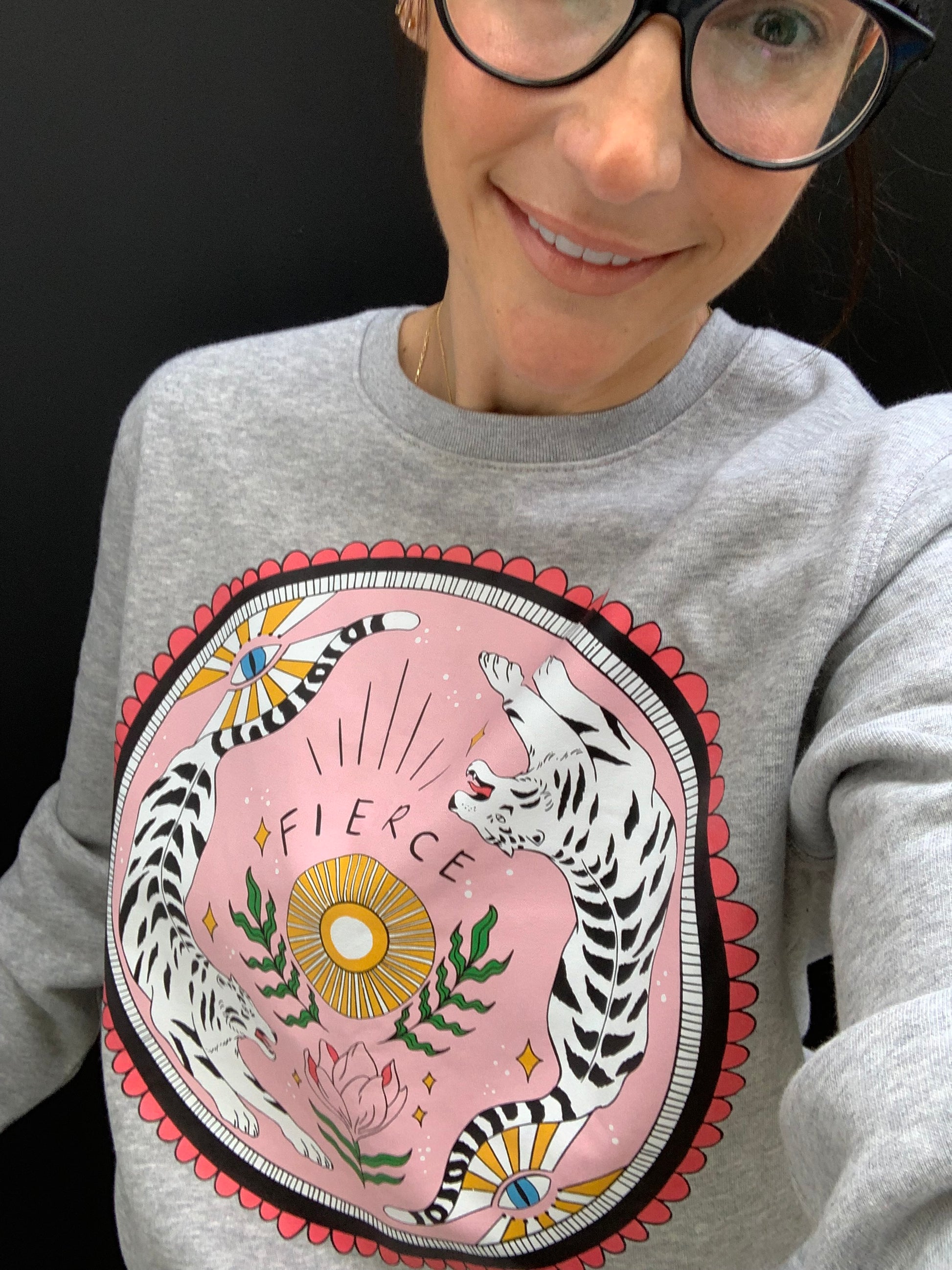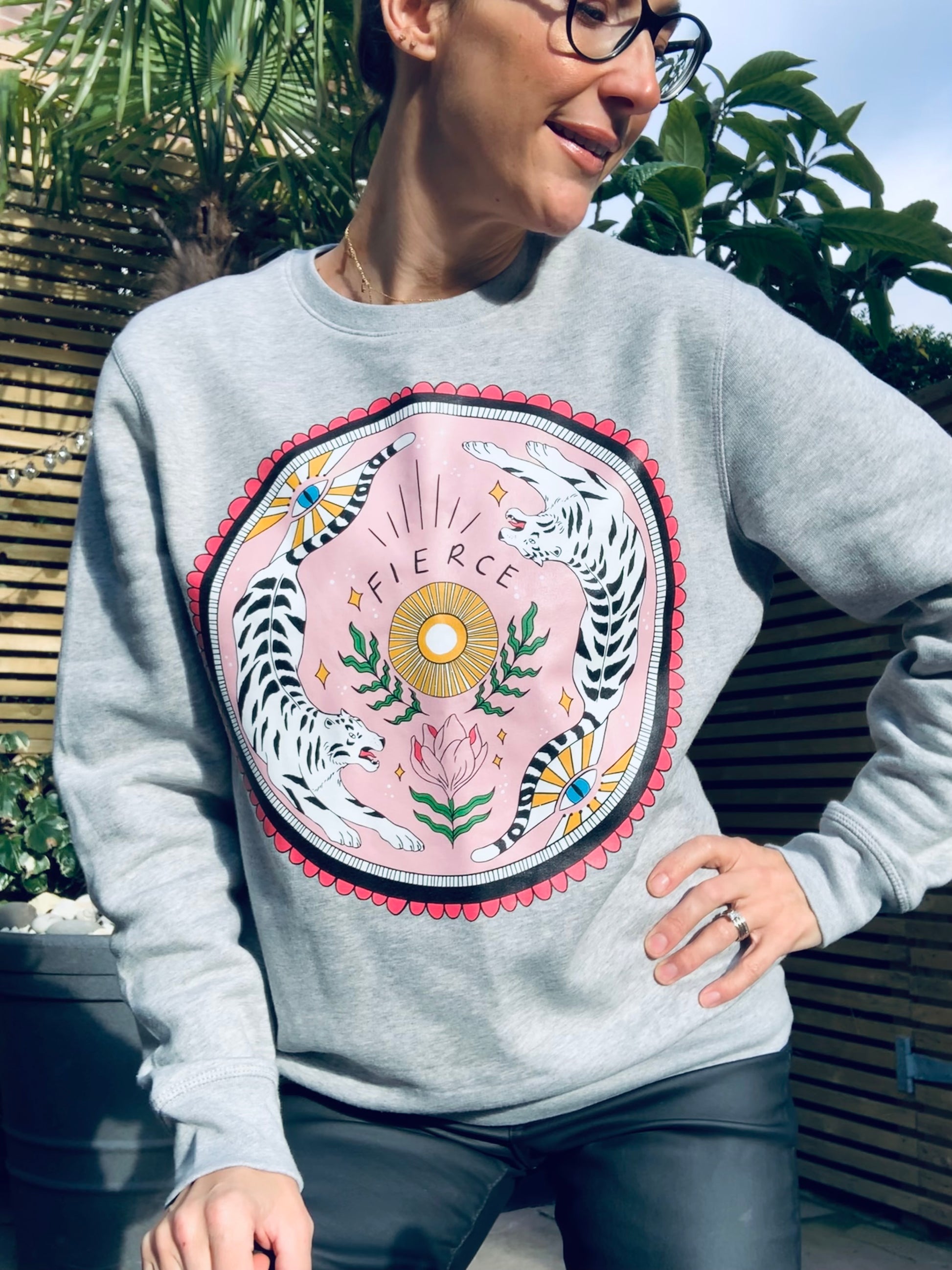 Organic cotton and recycled polyester sweatshirt. Supersoft and fleecey lined. Printed with a beautiful multi-coloured, embroidered, hand drawn heart embellishment.